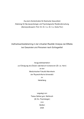 Das Ziel dieser Studien war es, die Verwendung eines für den Sportbereich entwickelten Trainingsgerätes (Helix-Arena) in Bezug auf die Rehabilitation von Personen nach Schlaganfall zu testen. Die Helix-Arena ist ein kreisrunder Raum, in dem mit Hilfe von Projektoren eine kontinuierliche 360° Projektion möglich ist. Ziel der Studie war es, die Wirkung eines Aufmerksamkeits-Trainings auf die Aufmerksamkeitsleistung und das Wohlbefinden in der Helix-Arena im Vergleich zu einem Standardtraining zu evaluieren. In einer ersten Studie (Studie 1) an 34 gesunden Teilnehmenden wurden die Trainingsmodalitäten geprüft und Trainingseffekte untersucht. Nach erfolgreichem Abschluss der ersten Studie wurde die zweite Studie mit 33 Personen nach Schlaganfall (Studie 2) durchgeführt. Der Versuchsablauf war bei beiden Studien identisch. Die Teilnehmenden durchliefen insgesamt sechs Termine über zwei Wochen hinweg, wo-bei vor und nach dem Training Aufmerksamkeitsleistungen und affektive Variablen untersucht wurden. Dazwischen wurden vier Trainingseinheiten absolviert. Ein spezielles Verfolgungstraining wurde entweder in der Helix-Arena (Experimentalgruppe, N = 19 Studie 1, N = 17 Studie 2) oder am PC (Kontrollgruppe, N = 15 Studie 1, N = 16 Studie 2) durchgeführt. Als abhängige Variablen wurden zu den Prä- und Post-Messungen Aufmerksamkeitsfunktionen mit Subtests der Testbatterie zur Aufmerksamkeitsprüfung (TAP) getestet. Zudem wurde der Einfluss des Trainings auf den allgemeinen Affekt mit dem Positive and Negative Affect Schedule (PANAS) vor und nach jeder Trainingseinheit abgefragt. Es konnten signifikante Verbesserungen der Reaktionszeit in Subtests der TAP von Prä- zu Post-Messung für Teilnehmende der EG gefunden werden. Diese Verbesserungen traten in beiden Studien auf. Zudem konnte in Studie 1 eine signifikante Verbesserung des positiven Affekts für Teilnehmende der EG gefunden werden. Dieser Effekt konnte in Studie 2 nur als Tendenz nicht aber als signifikanter Effekt beobachtet werden. Zusammenfassend lässt sich ableiten, dass die Helix-Arena Potential in der Rehabilitation von Personen nach Schlaganfall hat. Die Berichte der Teilnehmenden waren positiv und zeigen, welcher Mehrwert durch die Helix-Arena während der neurologischen Rehabilitation in Bezug auf Motivation und gesteigerte Teilnahme hergestellt werden kann. Mit weiteren Anpassungen könnte der neurologische Rehabilitationsprozess von der Eingliederung eines solchen Gerätes profitieren.
