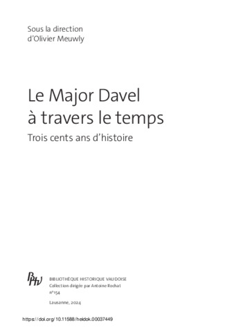 In: Meuwly, Olivier (Hrsg.): Le Major Davel à travers le temps : trois cents ans d'histoire. Lausanne, Bibliothèque historique vaudoise 2024, pp. 297-315 (Bibliothèque Historique Vaudoise ; 154) . ISBN 978-2-88454-150-1