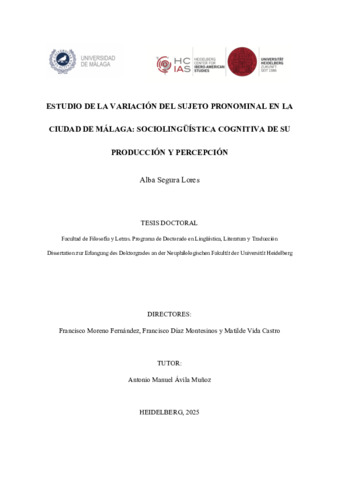 Esta Tesis Doctoral se vertebra sobre los fundamentos teóricos de la sociolingüística cognitiva interesada por la producción variable de las manifestaciones lingüísticas y, a su vez, por la percepción que los hablantes tienen sobre la variabilidad (Moreno Fernández, 2012, p. 89). De modo que nuestro estudio se centra en la variación gramatical en español, concretamente en la alternancia de la ausencia y presencia del pronombre personal sujeto desde la sociolingüística cognitiva. Este planteamiento estructura nuestro trabajo en dos bloques principales: los usos del sujeto pronominal y la percepción cognitiva de la variación ausencia-presencia del pronombre personal sujeto.