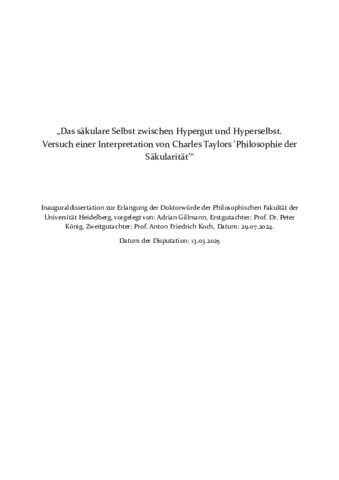 Charles Taylors Philosophie der Säkularität verknüpft Religionsphilosophie mit Gesellschaftskritik und Erkenntniskritik mit Moralphilosophie. Für ihn wird die Entwicklung eines Säkularen Zeitalters und damit von Religion als einer Option unter anderen, erst durch die Transformation der religiösen Optionen innerhalb einer pluralen Moderne verständlich. Dabei wird Säkularität als ein vielseitiger Prozess der Mobilisierung und Veränderung von Religion sowie des Aufkommens alternativer, säkular-humanistischer Weltanschauungen beschrieben. Diese Arbeit versucht aufzuzeigen, dass eine solche Auffassung mit seiner früheren Philosophie von Hypergütern des Selbst in Verbindung steht. Ein säkulares Selbst verweist auf den Menschen als sich selbst interpretierendes Wesen, welches mit höchsten Gütern für ein Selbst, den Hypergütern, die den Wert anderer Güter und des Selbst bestimmen, das Hyper seines Selbst begründet. Dieses kann verschiedenste Formen annehmen, wenn religiöse Optionen wie beispielsweise bei Rudolf Otto, William James und Emile Durkheim um die säkular-humanistischen David Humes und Friedrich Nietzsches ergänzt werden. Eine solche mehrdeutige Säkularität von Optionen unter anderen entspricht einer Philosophie des säkularen Selbst - als lebendige Interpretation des Selbst zwischen Hypergut und Hyperselbst.
