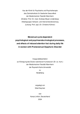 In this dissertation, I investigated the role of cognitive emotion regulation strategies on affective, cognitive, and cortisol trajectories across the menstrual cycle in women with and without Premenstrual Dysphoric Disorder (PMDD). PMDD has been included as a unique diagnostic entity in the ICD-11 and DSM-5 diagnostic systems and is charac-terised by at least one affective core symptom with additional cognitive or somatic symptoms that are restricted to the (late) luteal phase and resolve within a few days after the onset of menstruation in the follicular phase. Given the cyclical-dynamic course of symptoms in PMDD, longitudinal designs (e.g. using diary or ambulatory assessment data) over the menstrual cycle are of particular relevance. The overarch-ing aim of this dissertation was to use such longitudinal methods to identify cycle-phase-specific risk and protective factors for premenstrual mood deterioration and en-docrinological markers for PMDD. Study 1 of my dissertation (Chapter II) examines the role of habitual (trait) tendencies of cognitive emotion regulation strategies for momentary mood across the menstrual cycle in women with PMDD. Compared to healthy controls, women with PMDD showed stronger tendencies towards unfavourable emotion regulation strategies (higher rumi-nation and lower reappraisal and mindfulness tendencies). Multilevel analyses re-vealed that favourable manifestations of these habitual cognitive emotion regulation strategies in women with PMDD were associated with improved mood during the men-strual, follicular and ovulatory phases, but did not protect affected women against mood deterioration during the late luteal phase. This suggests possible cycle-phase-specific difficulties in the implementation of adaptive emotion regulation strategies and possible limitations of conventional psychotherapy methods that address emotion reg-ulation across phases in the treatment of PMDD. The results of this study were repli-cated in Study 2 (Chapter III) in an independent sample. In contrast, favourable mo-mentary cognitive states during the luteal phase predicted better premenstrual mood. Thus, this study points to the potential of cycle-phase-specific microinterventions in which luteal-phase-specific cognitive processes could act as therapeutic mechanisms. Furthermore, in Study 2, women with PMDD did not show cyclical fluctuations in corti-sol activity, whereas healthy women had lower cortisol levels during the late luteal phase compared to the follicular phase, with additional cortisol reductions following moments of favourable cognitive states. Lack of cortisol cyclicity and reactivity to pre-menstrual cognitive processes may therefore represent a possible endocrinological marker for PMDD. In Study 3 (Chapter IV), I investigated affective and cognitive responses to induced ruminative and mindful self-focus across the menstrual cycle using experimental am-bulatory inductions in the daily lives of women with and without PMDD. Women with PMDD responded to induced mindfulness with greater increases in positive affect than healthy controls, especially during the late luteal phase. Regardless of cycle phase and clinical status, induced rumination predicted greater momentary negative affect and momentary rumination and decreased momentary mindfulness, whereas induced mindfulness predicted greater momentary self-acceptance. In Study 4 (Chapter V), I examined a sample with subthreshold PMDD. Here, adaptive habitual emotion regulation (mindfulness and acceptance) was associated with weaker increases in premenstrual symptoms and functional impairment. Stronger increases in premenstrual symptoms and functional impairment in turn predicted increases in rumi-nation and perceived daily stress during the luteal phase. These findings point to the potential of dimensional approaches to investigate possible risk and protective factors for the transition from subclinical to clinical manifestations of premenstrual symptoms, as well as the potential of habitual mindfulness and acceptance as preventive measures for PMDD. In Study 5 (Chapter VI), I showed that in women with PMDD, adverse childhood expe-riences were associated with stronger premenstrual mood deterioration and an addi-tional cortisol decrease during the luteal phase. This suggests the clinical importance of childhood adversity for the cyclical course of symptoms and cortisol in PMDD. Taken together, these studies point to the relevance of a multilevel approach that ex-amines macro-processes (e.g. habitual emotion regulation, adverse childhood experi-ences) as well as meso- and micro-processes (cycle-phase-specific cognitive and en-docrinological risk factors) of psychobiological factors in PMDD in order to identify their potential inter- and intra-individual variations. Evidence from this research approach may inform the development and advancement of personalised treatment approaches for PMDD.