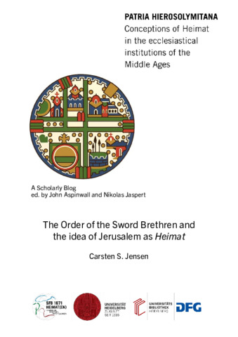 | Collection: | Patria Hierosolymitana: Conceptions of Heimat in the ecclesiastical institutions of the Middle Ages – a scholarly blog |