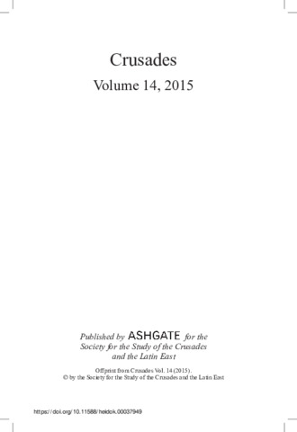 In: Crusades / Society for the Study of the Crusades and the Latin East, 14 (2015), pp. 1-47. ISSN 1476-5276 (Druck-Ausg.); 2832-7861 (Online-Ausg.)