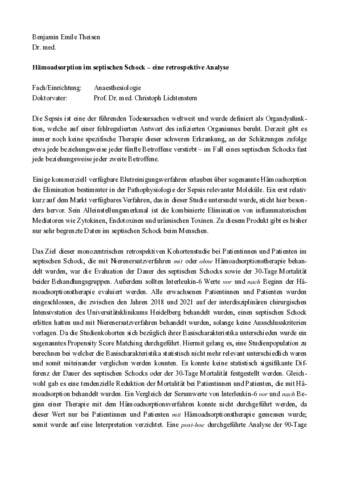 | Supervisor: | Lichtenstern, Prof. Dr. med. Christoph |
