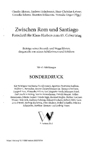 In: Alraum, Claudia ; Holndonner, Andreas ; Lehner, Hans Christian ; Scherer, Cornelia ; Schlauwitz, Thorsten ; Unger, Veronika (Hrsgg.): Zwischen Rom und Santiago. Bochum, Verlag Dr. Dieter Winkler 2016, pp. 79-98 . ISBN 978-3-89911-239-9