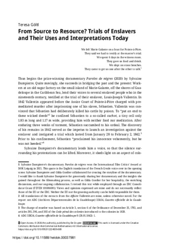 German Title: Von der Quelle zur Resource? Prozesse gegen Sklavenhalter und ihre heutigen Verwendungen und Interpretationen