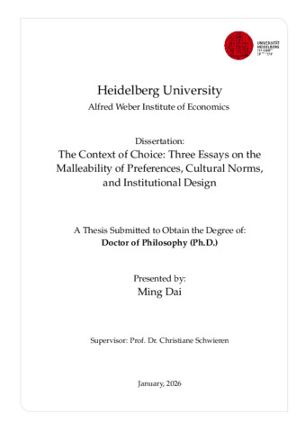 This dissertation explores how context—specifically social information, cultural norms, and institutional arrangements—shapes decision-making. The thesis comprises five chapters: an introduction, three main empirical studies, and a concluding outlook. Chapter 1 introduces the research background and outlines the motivation for the studies. The core analysis is presented in Chapters 2 through 4. Chapter 2 investigates the malleability of distributional preferences. Chapter 3 examines how normative signal mechanisms impact cooperation across different cultural backgrounds. Chapter 4 compares individual versus group intertemporal-risky decisions and analyzes how institutional rules, such as majority versus unanimity, mediate group outcomes. Finally, Chapter 5 provides an outlook on future possibilities and potential extensions of the thesis.