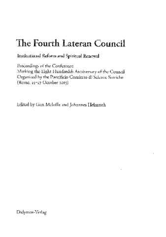 | Title of Book: | The fourth Lateran Council: institutional reform and spiritual renewal : proceedings of the conference marking the eight hundredth anniversary of the council, organized by the Pontificio comitato di scienze storiche (Rome, 15-17 October 2015) |