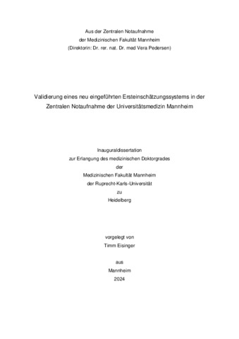 Einleitung: Die Zentralen Notaufnahmen der Krankenhäuser stellen neben dem Rettungsdienst die wichtigsten Eckpfeiler in der Notfallversorgung der Bevölkerung dar. Bei immer weiter steigernden Patientenzahlen und begrenzten Ressourcen der Krankenhäuser besteht die Gefahr sogenannter „Overcrowding Phänomene“, bei welchen die Patientenzahlen die materiellen, räumlichen oder personellen Ressourcen übersteigen und somit Schwerkranken oder schwerverletzten Patienten mit dringlicher Behandlungsbedürftigkeit eine zeitnahe Versorgung verwehrt bleiben könnte. Um dieses zu verhindern, wurden sogenannte Ersteinschätzungssysteme (Triagesysteme) als Werkzeug zur Behandlungspriorisierung von Notfallpatienten eingeführt. Je nach Erkrankungsschwere werden hier den Patienten Kategorien zugeteilt, welche mit bestimmten maximalen Wartezeiten einhergehen. Gemäß eines Beschlusses des Gemeinsamen Bundesausschusses (G-BA) zur Strukturierung der Notfallversorgung wurde in der vorliegenden Studie das neu eingeführte fünfstufige Ersteinschätzungssystem der Zentralen Notaufnahme der Universitätsmedizin Mannheim evaluiert. Material und Methoden: Im ersten Studienabschnitt wurden in einer ca. vierzehnwöchigen Beobachtungsphase insgesamt 10070 Patienten durch die Sichtungspflegekräfte der Zentralen Notaufnahme triagiert. Die vorgenommen Triagierungen wurden von Experten hinsichtlich ihrer Korrektheit überprüft und somit wurden als Teile der Kriteriumsvalidität Spezifität und Sensitivität des Ersteinschätzungssystems ermittelt. Weiterhin wurden mehrere Surrogatparameter bezüglich des Outcomes der Patienten untersucht und mit den zuvor vergebenen Triagestufen verglichen, um die Konstruktvalidität des Systems zu messen. So z.B. Gesamtmortalität, 30-Tage Mortalität, Aufenthaltsdauer, Verlegung auf die Intensivstation, Anwendung von Life-Saving-Interventions (LSI) und Weitere. Im zweiten und dritten Studienabschnitt wurde die Reliabilität des Systems überprüft. Hierzu wurden zunächst 50 Fälle aus den zuvor triagierten 10070 Patienten vier Ärzten und 23 Pflegekräften erneut zur Triagierung vorgelegt, um die Interrater- Reliabilität zu ermitteln. Im dritten Studienabschnitt wurden dann dieselben 50 Fälle den gleichen Ärzten und Pflegekräften nach ca. vier Wochen in zufällig geänderter Reihenfolge erneut zur Ersteinschätzung vorgelegt. Somit konnte die Intrarater-Reliabilität, also interne Stabilität, des Systems bestimmt werden. Ergebnisse: Bei 10070 vorgenommenen Triagierungen wurden 9850 Patienten korrekt ersteingeschätzt (97,82%) und 220 Patienten fehlerhaft triagiert. Die ermittelten Sensitivitäten und Spezifitäten für die einzelnen Triagestufen ergaben: Blau= Sensitivität 99,14, Spezifität 99,58 (p<0,0001), Grün= Sensitivität 98,74, Spezifität 99,00 (p<0,0001), Gelb= Sensitivität 96,73, Spezifität 99,16 (p<0,0001), Orange= Sensitivität 96,92, Spezifität 99,26 (p<0,0001), Rot= Sensitivität 100,00, Spezifität 100,00 (p<0,0001). Die Mortalität stieg mit zunehmender Dringlichkeitsstufe an und war in der roten Triagestufe am höchsten (p<0,0001, Trend-Test nach Cochrane Armitage, Area under the curve (AUC)= 0,772). Zudem war die 30-Tage-Mortalität ebenfalls in der roten Kategorie am höchsten. So betrug die Überlebenswahrscheinlichkeit nach 30 Tagen 60,74% (p<0,0001, Logrank Test). Auch die mittlere Aufenthaltsdauer der Patienten stieg mit zunehmender Priorisierung an und gipfelte mit durchschnittlich 9,13 Tagen in der roten Kategorie (p<0,0001, Kruskal-Wallis- Test). Ebenso stiegen die Aufnahmeraten auf die Intensivstation mit zunehmender Dringlichkeitsstufe an und hatten mit 45,74% das Maximum in der roten Triagestufe erreicht (p<0,0001, Trend-Test nach Cochrane Armitage, AUC= 0,805). Life-Saving-Interventions wurden fast ausschließlich in den beiden höchsten Triagestufen durchgeführt, mit Abstand am meisten in der roten Kategorie (p<0,0001, Trend Test nach Cochrane Armitage). Die ermittelten gewichteten Kappa Koeffizienten zur Messung der Interrater Reliabilität ergaben für den Vergleich zwischen Goldstandard und den Ärzten einen Wert von Κ= 0,9955 und für den Vergleich zwischen Goldstandard und Pflegekräften einen Wert von Κ= 0,9062. Somit zeigten beide Vergleiche eine sehr gute bis nahezu perfekte (almost perfect) Übereinstimmung in den Triageergebnissen. Der gewichtete Kappakoeffizient wurde auch zur Messung der Intrarater Reliabiltät ermittelt. Hier wurde für die Ärzte ein Wert von Κ= 0,9864 und für die Pflegekräfte ein Koeffizient von Κ= 0,8812 ermittelt. Diese Werte entsprechen ebenfalls einer sehr guten Übereinstimmung der Ergebnisse zwischen der ersten und zweiten Triagierungsrunde. Fazit: Das neu eingeführte Ersteinschätzungssystem der Zentralen Notaufnahme der Universitätsmedizin Mannheim ist ein valides und reliables Werkzeug zur Ermittlung von Behandlungsdringlichkeiten und kann zur Prozessoptimierung und Verbesserung der Patientensicherheit in der Notfallversorgung beitragen. Die Ersteinschätzung kann hierbei sicher von Pflegekräften angewandt werden. Mit den vorliegenden Untersuchungen und Auswertungen werden die Kernforderungen des Beschlusses des G-BA erfüllt.