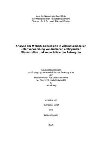 Die primäre familiäre Gehirnkalzifikation (primary familial brain calcification [PFBC]) ist eine komplexe neurodegenerative Erkrankung, die derzeit mit neun assoziierten Genen in Verbindung gebracht werden kann. In der neuroradiologischen Bildgebung weisen Betroffene häufig symmetrische, gefäßassoziierte Kalziumablagerungen unterschiedlicher Hirnareale auf. Auch das im Fokus dieser Arbeit stehende Gen myogenesis regulating glycosidase (MYORG) ist mit der PFBC assoziiert. Es unterliegt einem rezessiven Vererbungsmodus und weist im zentralen Nervensystem eine besonders hohe Expression im endoplasmatischen Retikulum von Astrozyten auf. Obwohl Mutationen in MYORG die zweithäufigste Ursache der genetisch aufgeklärten PFBC darstellen und eine fast 100-prozentige klinische Penetranz aufweisen, fehlen bis heute weitreichende Erkenntnisse zur Funktion von dem gleichnamigen Protein MYORG im menschlichen Körper sowie dessen Rolle bei der Pathogenese der PFBC. Auch kausale Therapieansätze, prognostische Marker oder in-vitro Krankheitsmodelle für die MYORG-assoziierte PFBC sowie die Erkrankung im Allgemeinen stehen zurzeit nicht zur Verfügung. Mit dem Ziel, weitere Erkenntnisse zur MYORG-assoziierten PFBC zu generieren, wurden im Rahmen dieser Arbeit Expressionsanalysen unterschiedlicher Proteine in Zellkulturmodellen unter Verwendung von humanen embryonalen Stammzellen und immortalisierten Astrozyten durchgeführt. Im ersten Teil wurden vier humane embryonale Stammzelllinien verwendet und zu induzierten Astrozyten differenziert. Zwei dieser Stammzelllinien waren genetisch unverändert, während die anderen beiden eine p.75*- Mutation im MYORG-Gen aufwiesen. Die Mutation führt zur Ausbildung eines Stoppcodons an der 75. Stelle des insgesamt aus 714 Aminosäuren bestehenden Proteins. Immunzytochemische Anfärbung von MYORG und dem ER-Marker Calnexin in den induzierten Astrozyten konnte in allen vier Zelllinien ein Signal für den verwendeten MYORG-Antikörper sowie eine Kolokalisation des MYORG-Signals mit dem Calnexin nachweisen. Da das Vorhandensein der p.75*-Mutation durch eine Genotypisierung bestätigt wurde und diese zu einem Knockout von MYORG führen sollte, ist das vorhandene Signal des MYORG-Antikörpers am ehesten auf eine fehlende Spezifität oder darüber hinaus eine Kreuzreaktion des Antikörpers mit einem anderen, im ER exprimierten Protein zurückzuführen. Im zweiten Teil dieser Arbeit wurde ein in-vitro Blut-Hirn-Schranken-Modell aus immortalisierten humanen Astrozyten und Endothelzellen erarbeitet. Unterschiedliche Konditionen dieses Modells wurden auf die zelluläre und nukleäre Oberfläche sowie die Expression von unterschiedlichen Markern untersucht. In der Auswertung zeigen sich zwar nur vereinzelt signifikante Ergebnisse, allerdings konnte in der Tendenz dennoch beobachtet werden, dass eine Co-Kultur von immortalisierten Astrozyten und immortalisierten Endothelzellen mit einer Kompartimentierung durch Membraneinsätze Vorteile gegenüber der Monokultur in unterschiedlichen Medien, aber auch gegenüber einer direkten Co-Kultur beider Zelllinien aufweist. Auch Unterschiede bezüglich der verwendeten Porengröße und der Vorbehandlung des Zellkulturmediums können beschrieben werden, was insbesondere bei der Untersuchung der nukleären und zellulären Oberfläche sowie der GFAP- und MYORG-Intensität auffiel. Bezüglich der quantitativen Proteinanalyse der astrozytären Marker und MYORG scheint die Verwendung der Polyestermembraneinsätze und die damit einhergehende Kompartimentierung der Zellkulturplatte ebenfalls eine positive Auswirkung auf die Proteinexpression zu haben. Zusammenfassend ist zu sagen, dass in beiden Teilen dieser Arbeit vielversprechende Modelle präsentiert wurden, die neben den beschriebenen Expressionsanalysen auch als Grundlage für weitere Experimente herangezogen werden können. Perspektivisch können daraus durch einige Modifikationen Krankheitsmodelle entwickelt und beispielsweise für die präklinische Verträglichkeits- und Wirksamkeitsprüfung neuer Therapien eingesetzt werden.