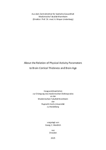 German Title: Zusammenhang zwischen der physischen Aktivität und der kortikalen Dicke des Gehirns sowie des Hirnalters