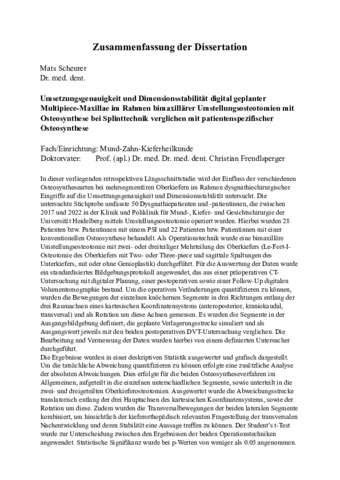 | Supervisor: | Freudlsperger, Prof. Dr. med. Dr. med. dent Christian |