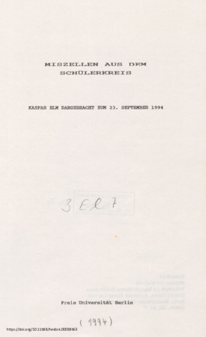 | Title of Book: | Miszellen aus dem Schülerkreis. Kaspar Elm dargebracht zum 23. September 1994 |