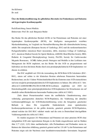 | Supervisor: | Meder, Prof. Dr. med. Benjamin |